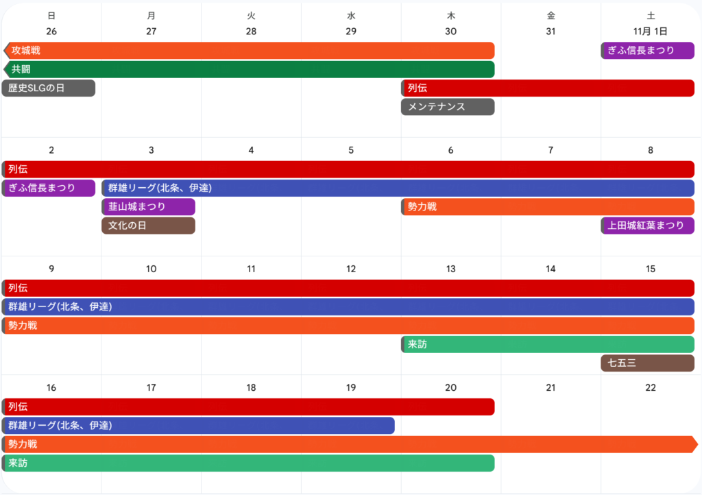 ・【群雄リーグ(北条、伊達)】11/3(月)~11/19(水)