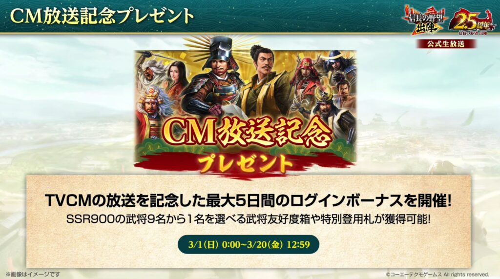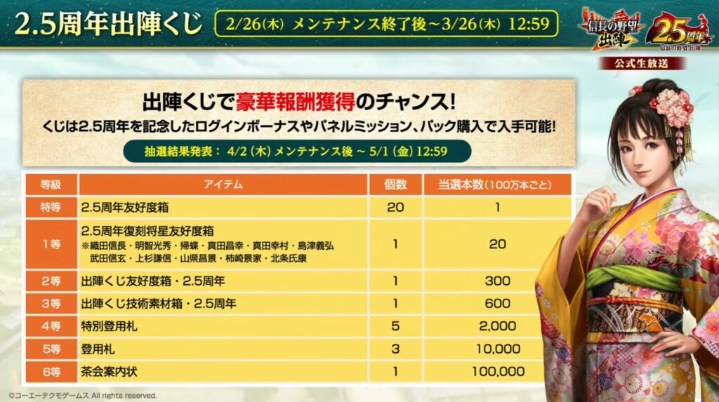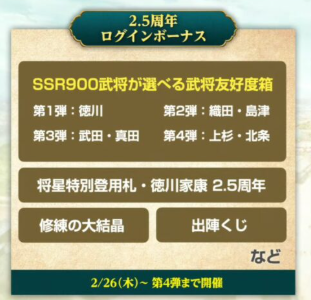 この記事は【信長の野望 出陣】の2.5周年記念の情報についてまとめています。