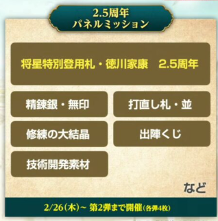 こちらは2.5周年で登場する武将を獲得することでクリアできるパネルミッションです。
