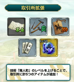 また【商人町】の技術LVを上げる事で交換可能なアイテムが追加されます。