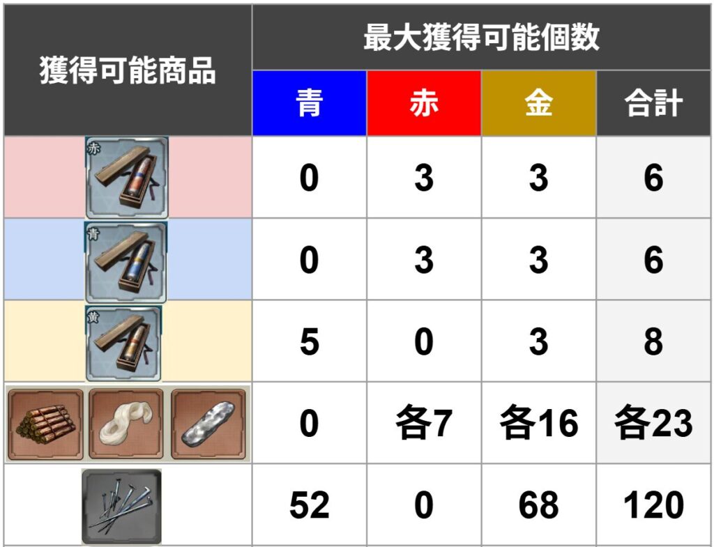 技術用素材以外にも武将強化用素材や汎用素材の獲得数も増加します。