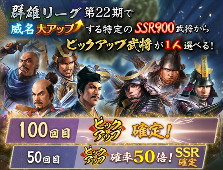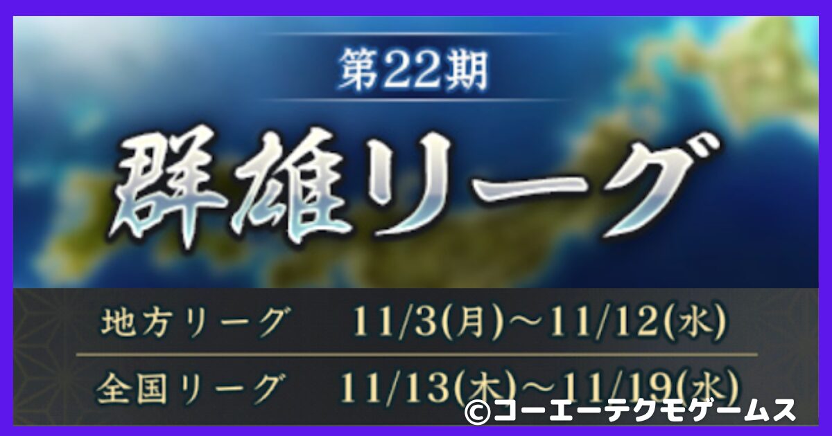 この記事は『信長の野望 出陣』の期間限定イベントである【群雄リーグ 第22期】の解説記事です。