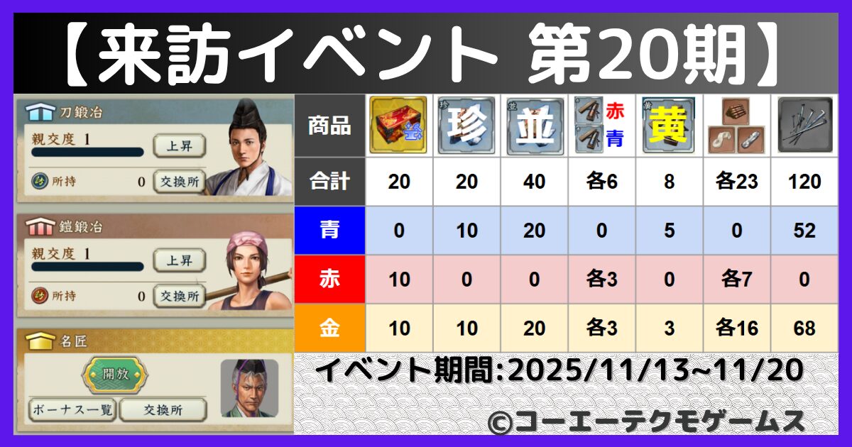 この記事では『信長の野望 出陣』の期間限定イベントである【来訪イベント 第14期 鍛冶屋】について解説いたします。