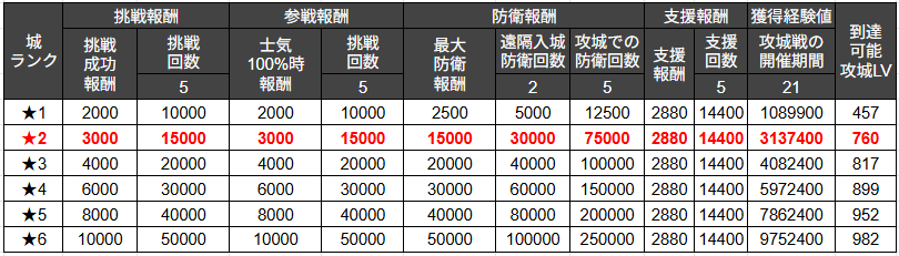 | 城ランク | 攻城成功時 | 攻城失敗時 |