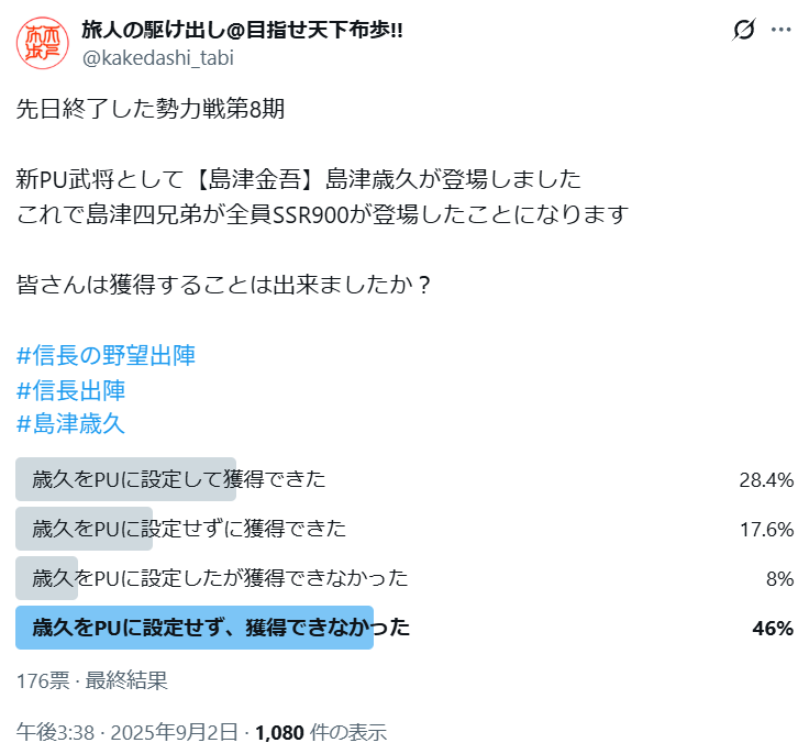 勢力戦第8期ではPU武将として【島津金吾】島津歳久が新登場しました。