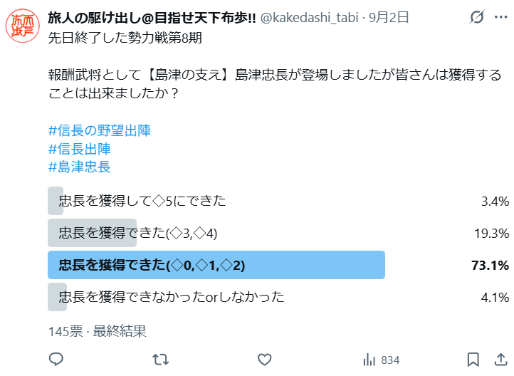 勢力戦第8期では報酬武将として【島津の支え】島津忠長が新登場しました。
