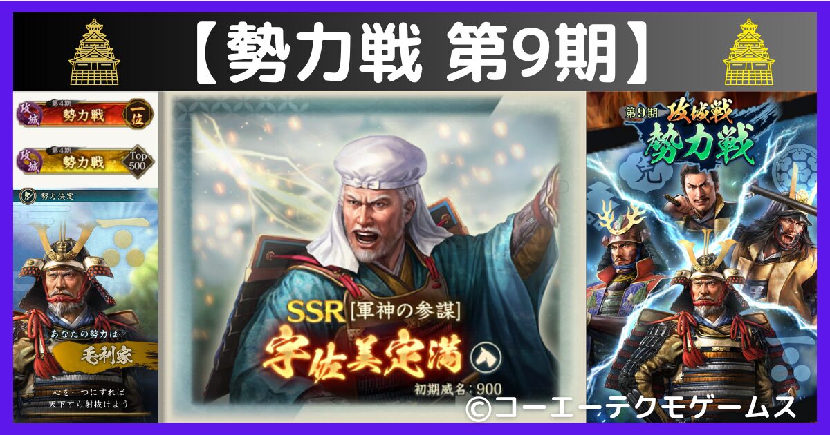 この記事では『信長の野望 出陣』の期間限定イベントである『勢力戦 第9期』について解説いたします。