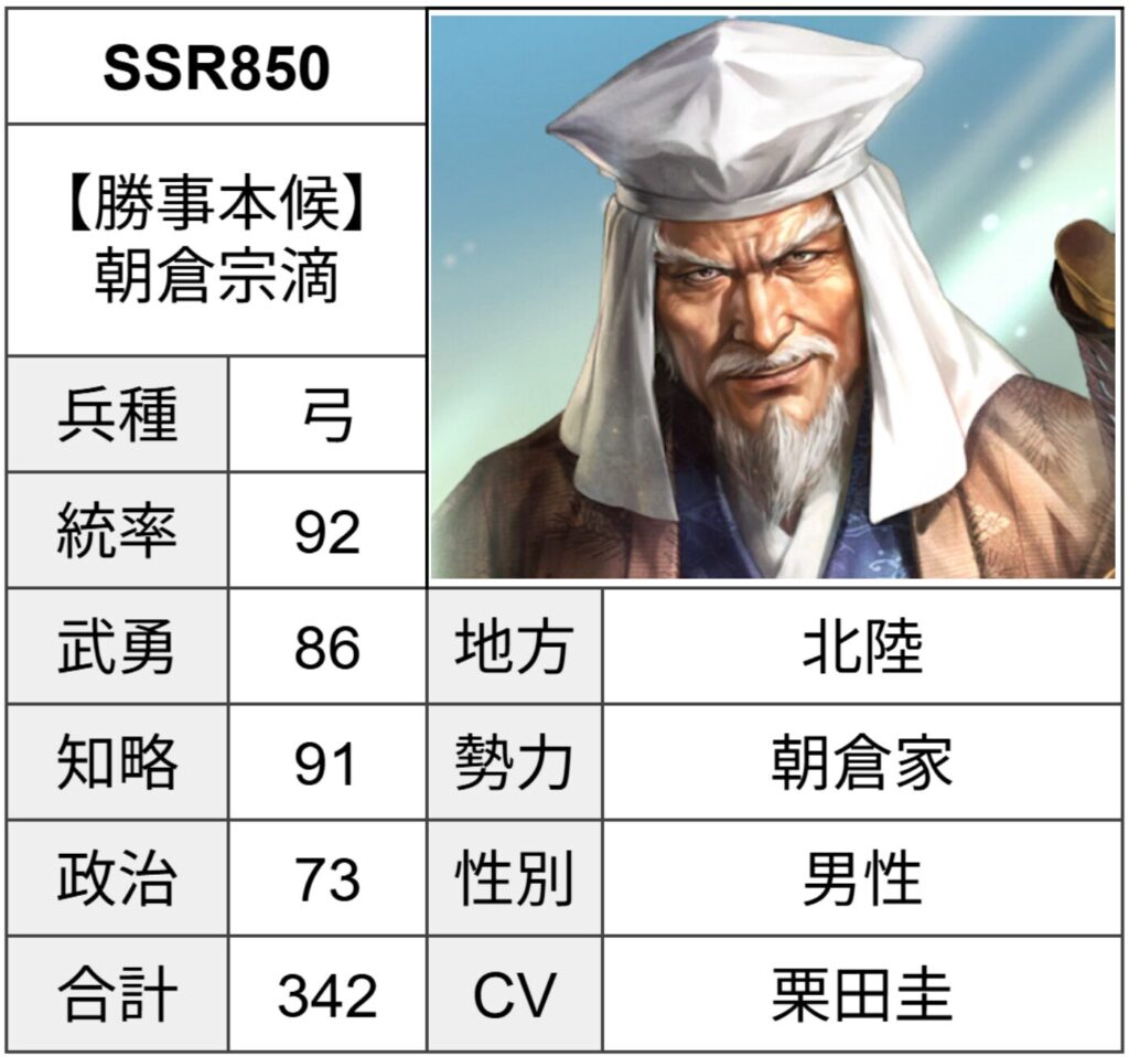 朝倉家は弓兵種の武将が多いため兵種一致ボーナスが狙いやすいです。