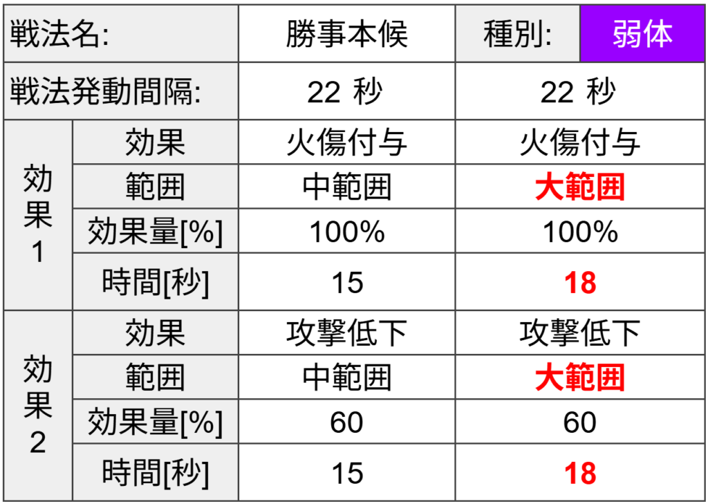 通常攻撃で与える事が出来るダメージが増えるということは、戦法を撃ちあう時間帯まで部隊が生き残れない場合が増えるという事です。