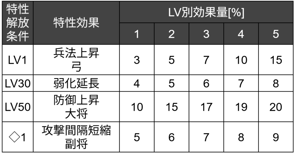 戦法発動まで部隊が耐えられるように防御を高めておきましょう。
