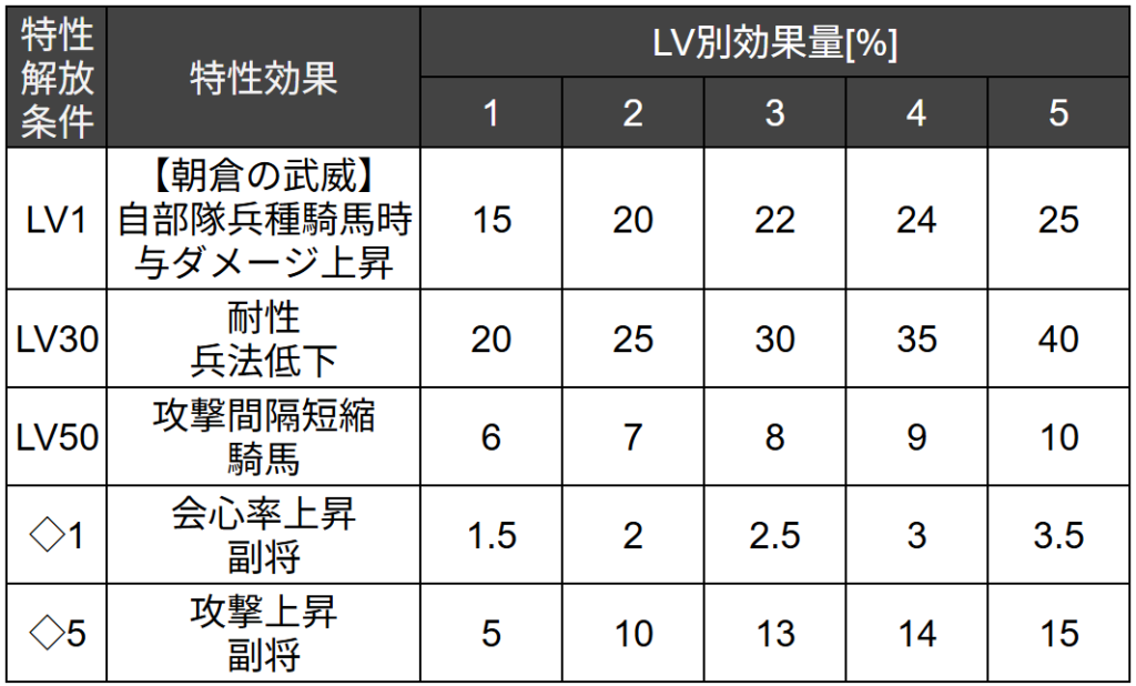固有特性として【朝倉の武威】を持ちます。