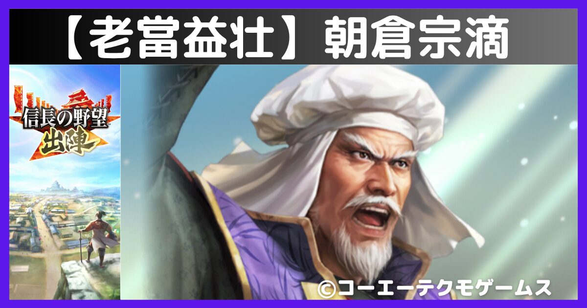 この記事では【信長の野望 出陣】(信長出陣)に登場する武将の1人である【老當益壮】朝倉宗滴について解説します。