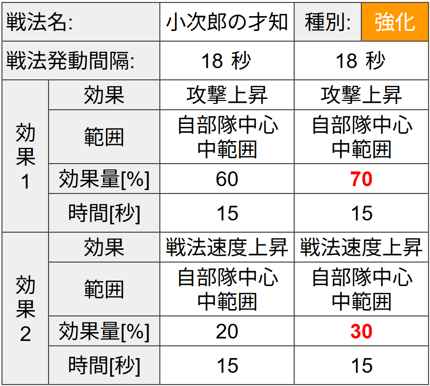 対象が足軽と騎馬に限定されますが、DPSへの寄与度は大きい特性と言えます。