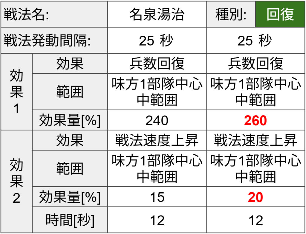 効果は【兵数回復】と【戦法速度上昇】の回復系戦法。