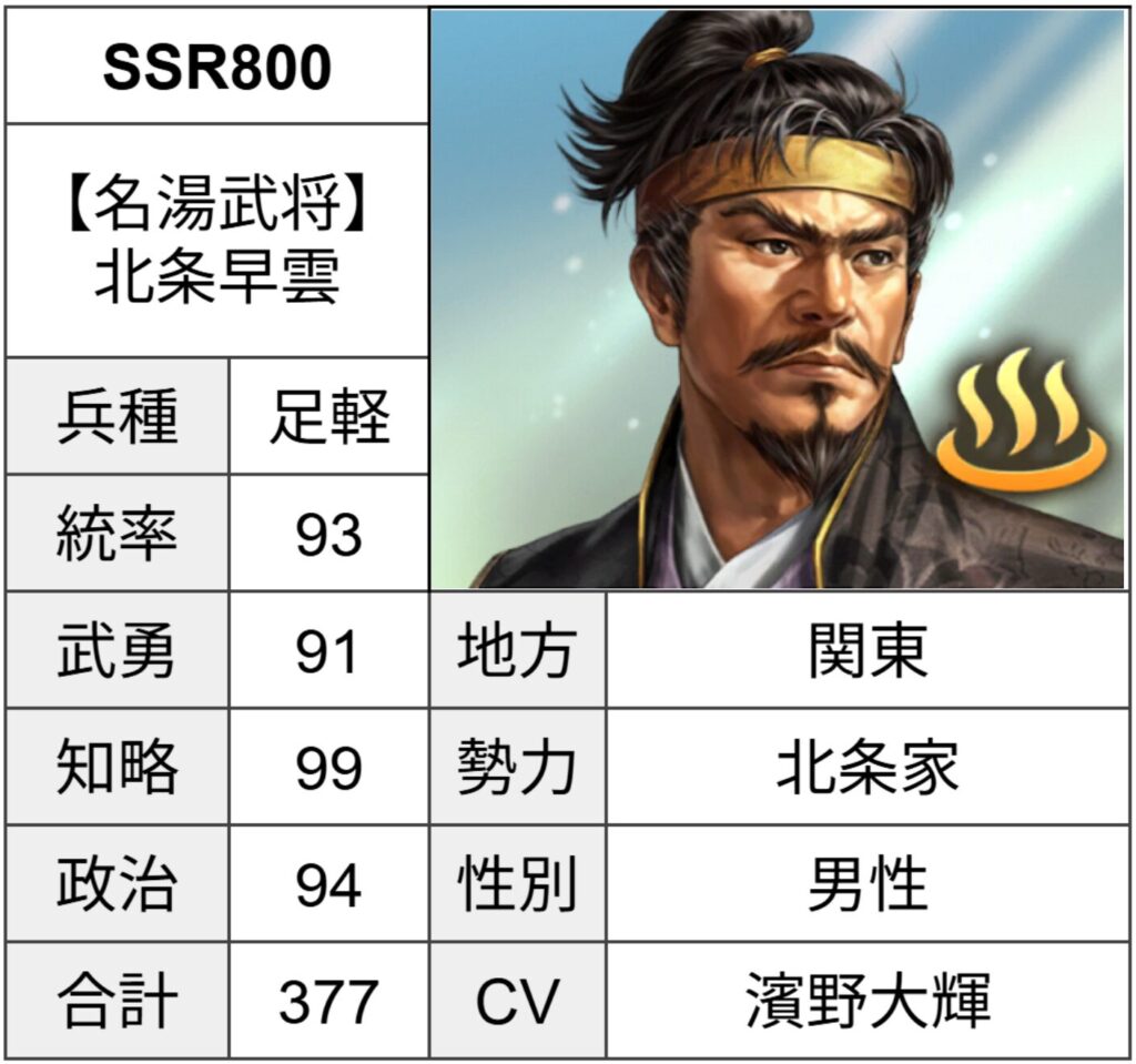 知略90台が少ない北条家にとっては救世主の1人です。
