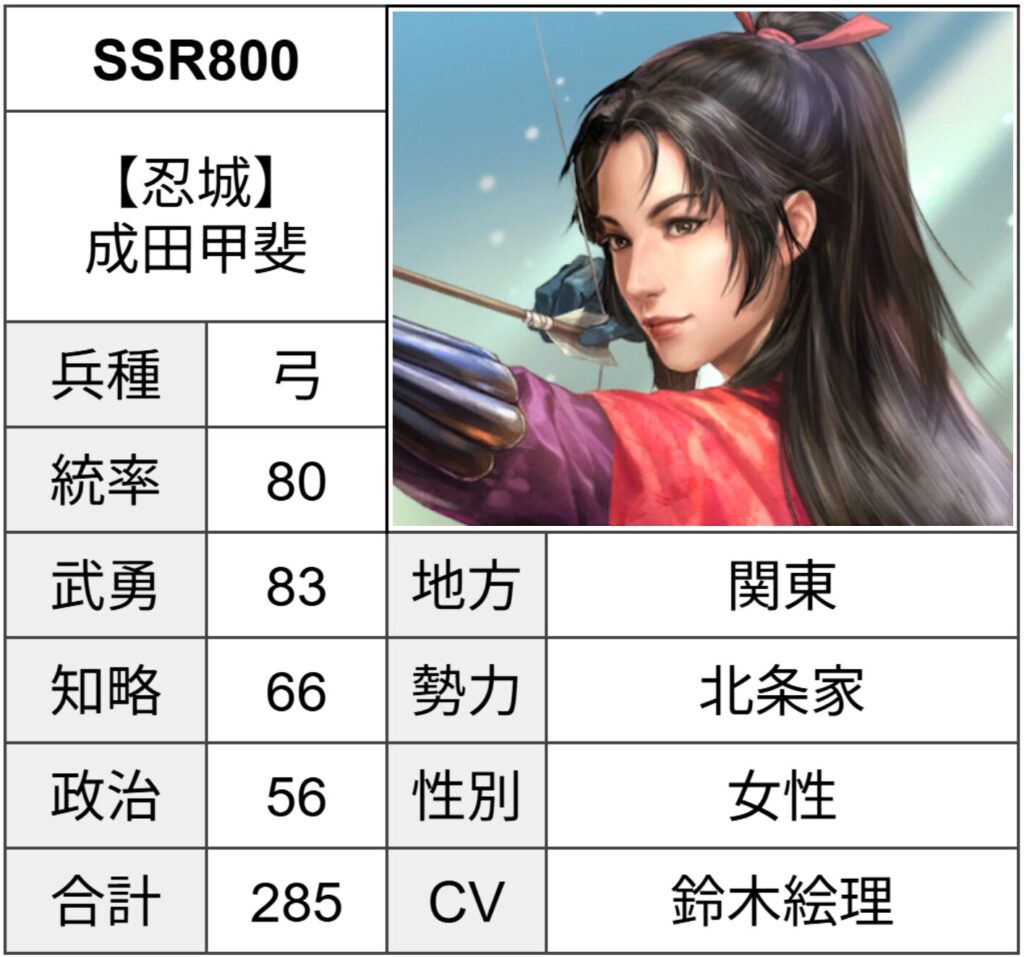 北条家は弓SSR武将が多いため、勢力一致、兵種一致、地方一致が狙いやすいです。