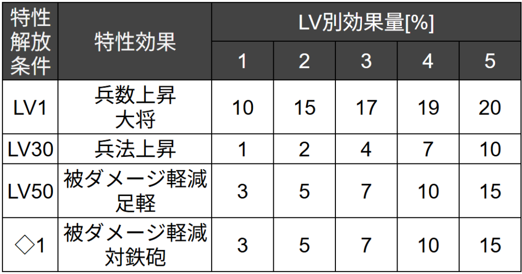 【兵数上昇・大将】を持ちます。