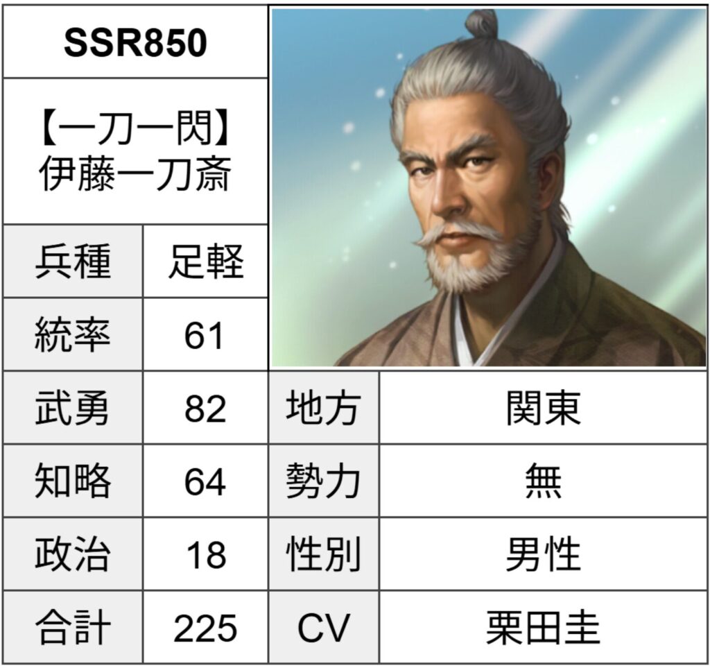 この記事では【信長の野望 出陣】(信長出陣)に登場する武将の1人である【一刀一閃】伊藤一刀斎について解説します。