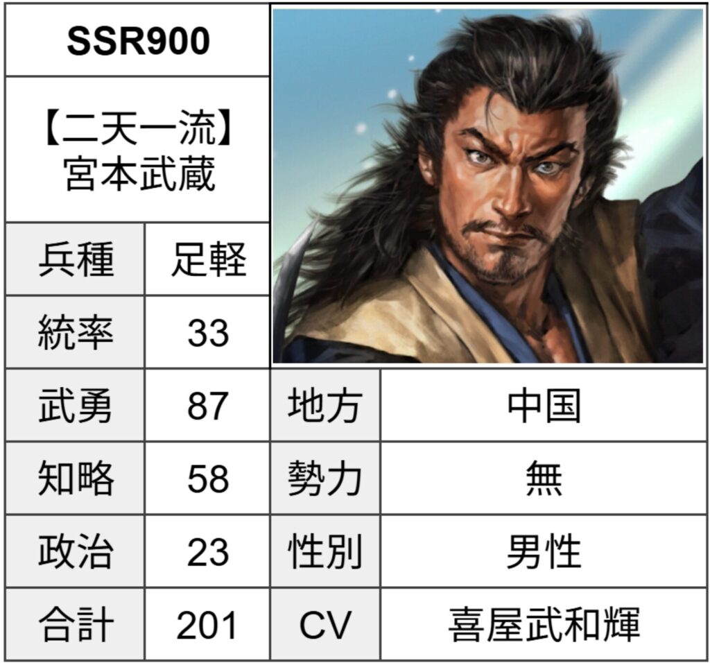 武蔵と小次郎のどちらを先に獲得するのかは好みですが、練兵所の任命効果的には武勇に勝る武蔵の方が効果量が高いです。