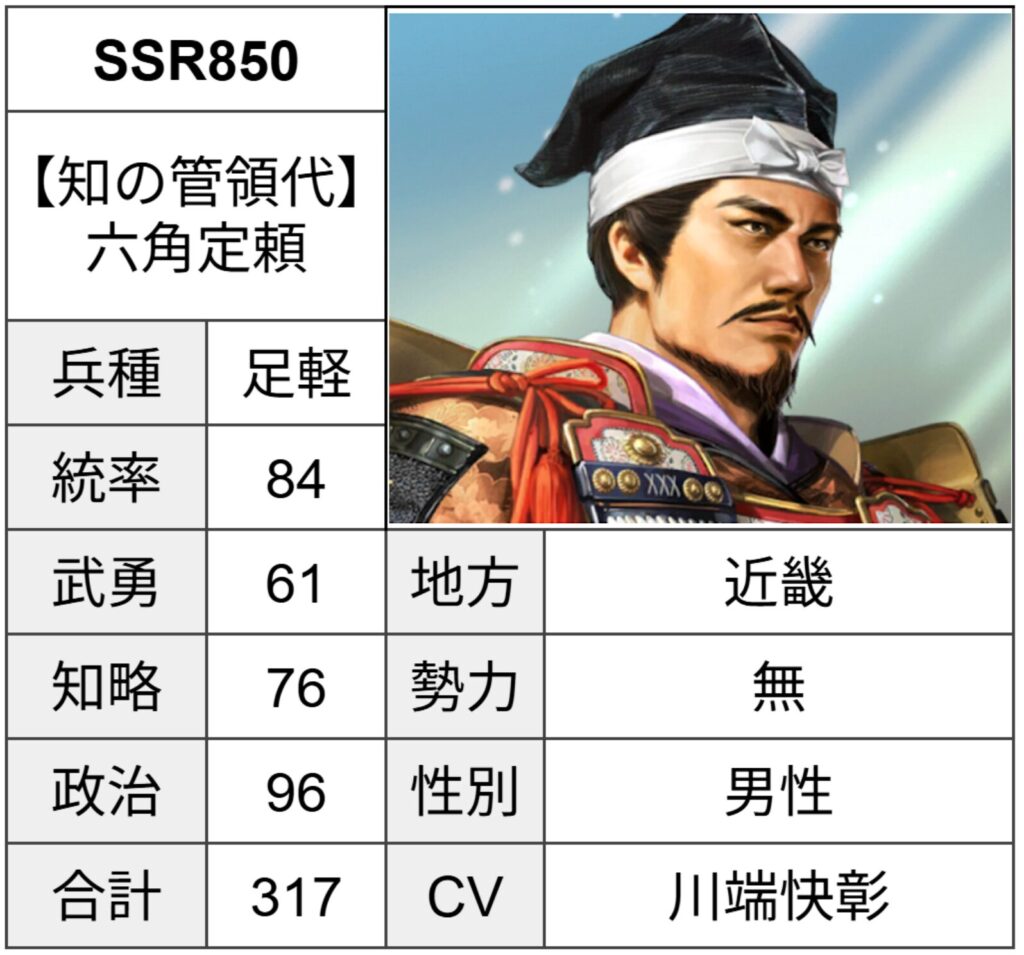 六角定頼は近畿地方のフィールドに登場します。