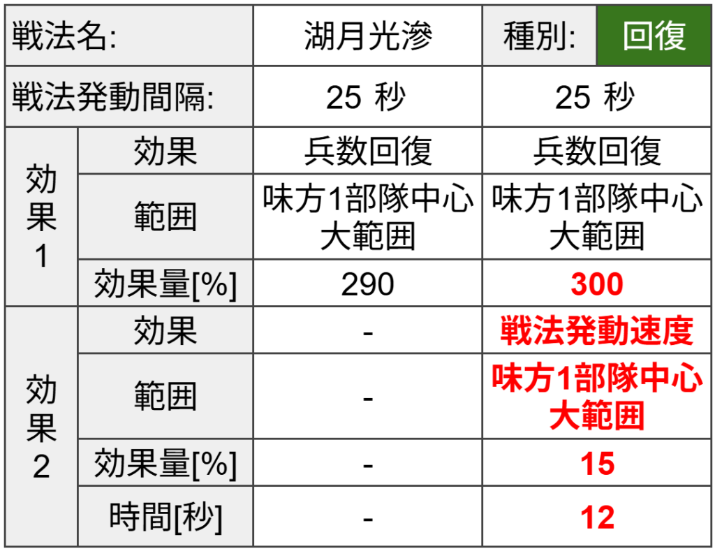 強化前から大範囲に【兵数回復】が行える上に強化すれば【戦法速度上昇】が追加されるため、共闘イベントとの相性が抜群に良いです。