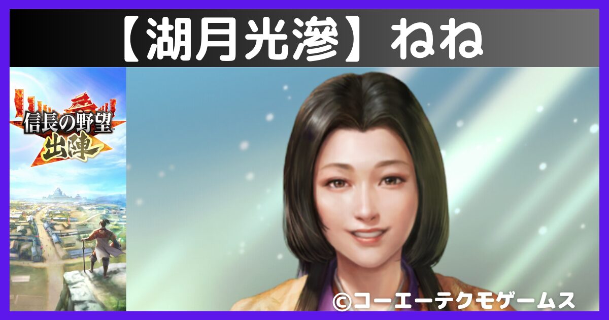 この記事では【信長の野望 出陣】(信長出陣)に登場する武将の1人である【湖月光滲】ねねについて解説します。
