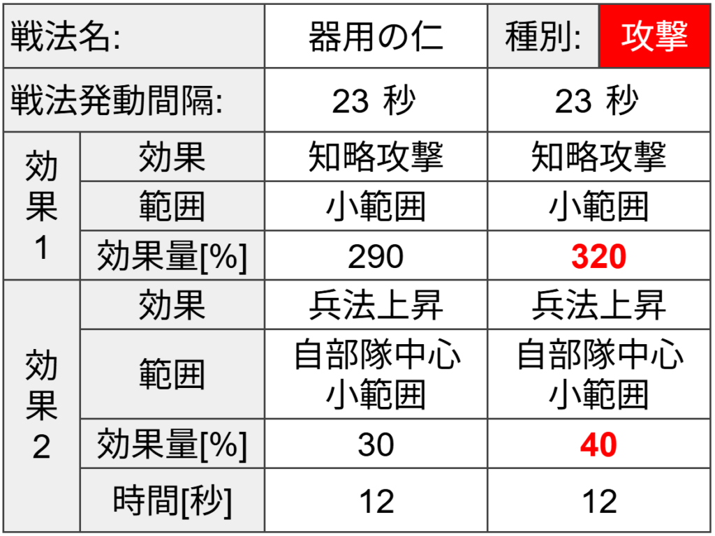効果は【知略攻撃】と【兵法上昇】の攻撃系戦法。