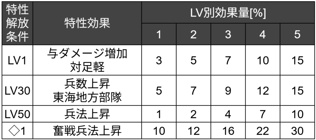 兵種や配置に依存せずに【兵法】を上げられる【兵法上昇】は便利な特性です。
