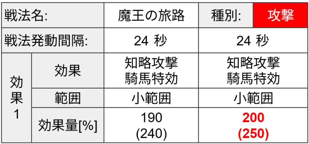 効果は【知略攻撃(騎馬特効)】の攻撃系戦法。