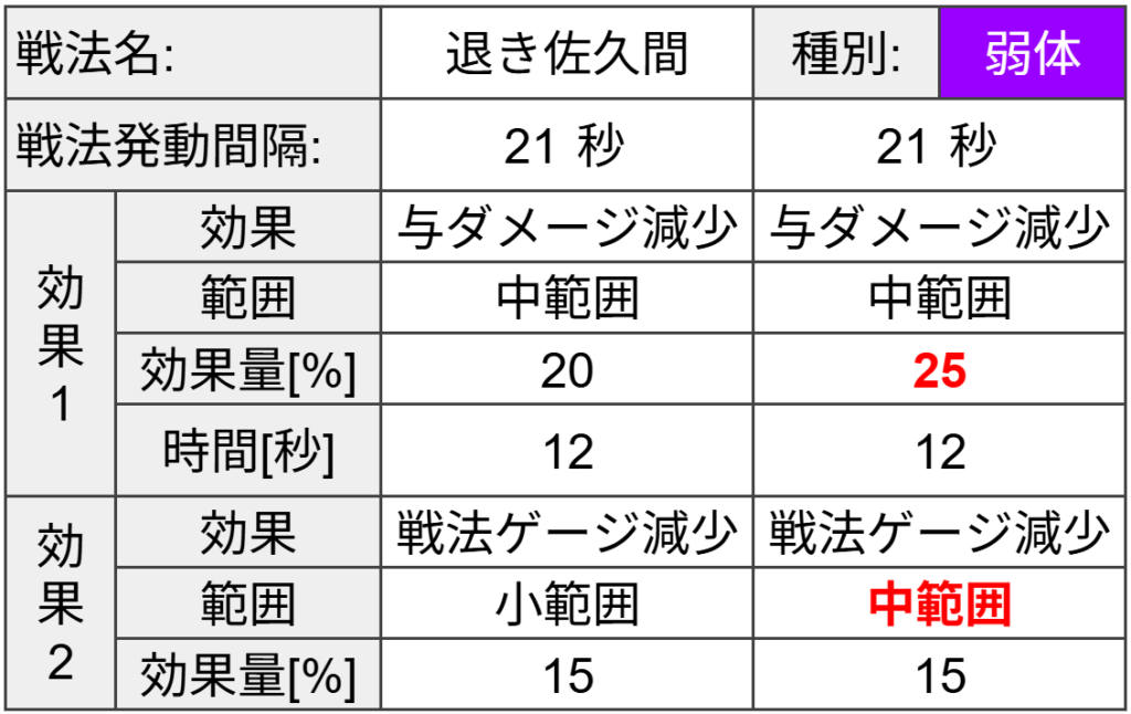 【与ダメージ減少】は中範囲、【戦法ゲージ減少】は小範囲です。