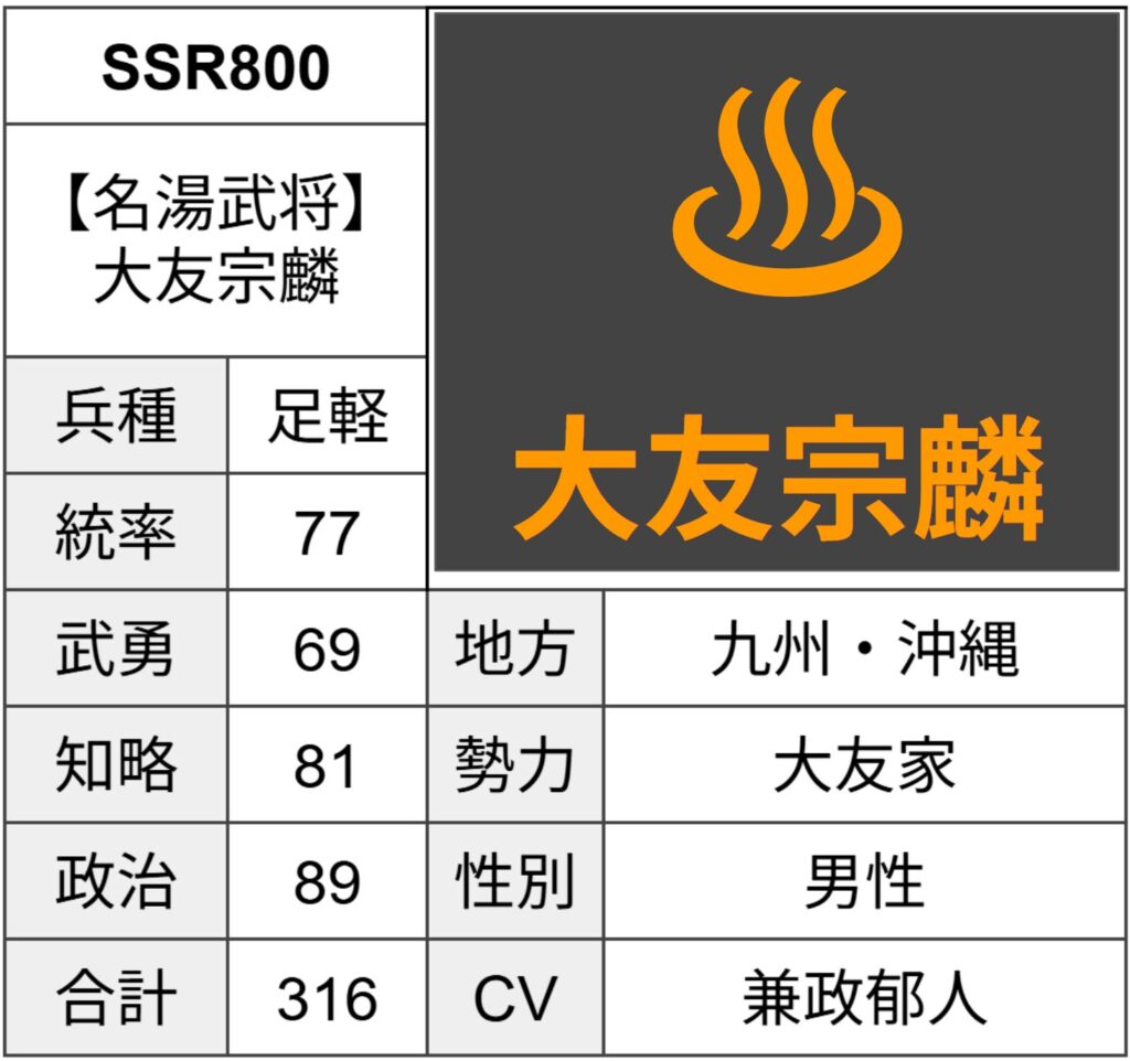 大友家武将のほとんどは九州・沖縄地方所属のため地方一致と勢力一致を同時に狙うが容易です。