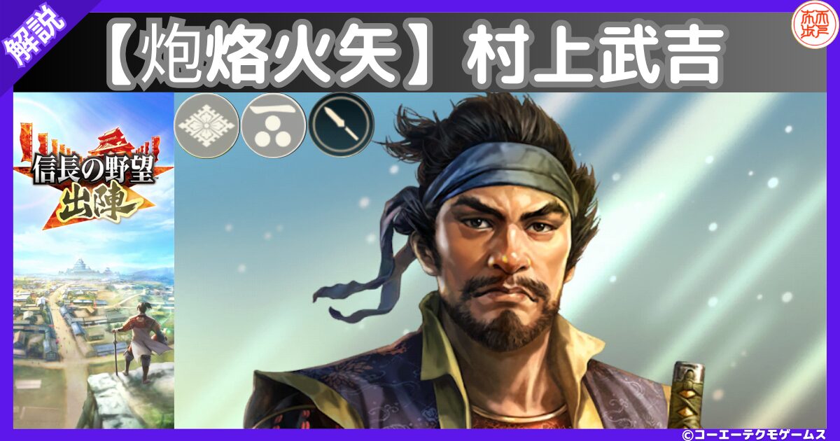 この記事では信長出陣(信長の野望 出陣) に登場する【炮烙火矢】村上武吉について解説します。