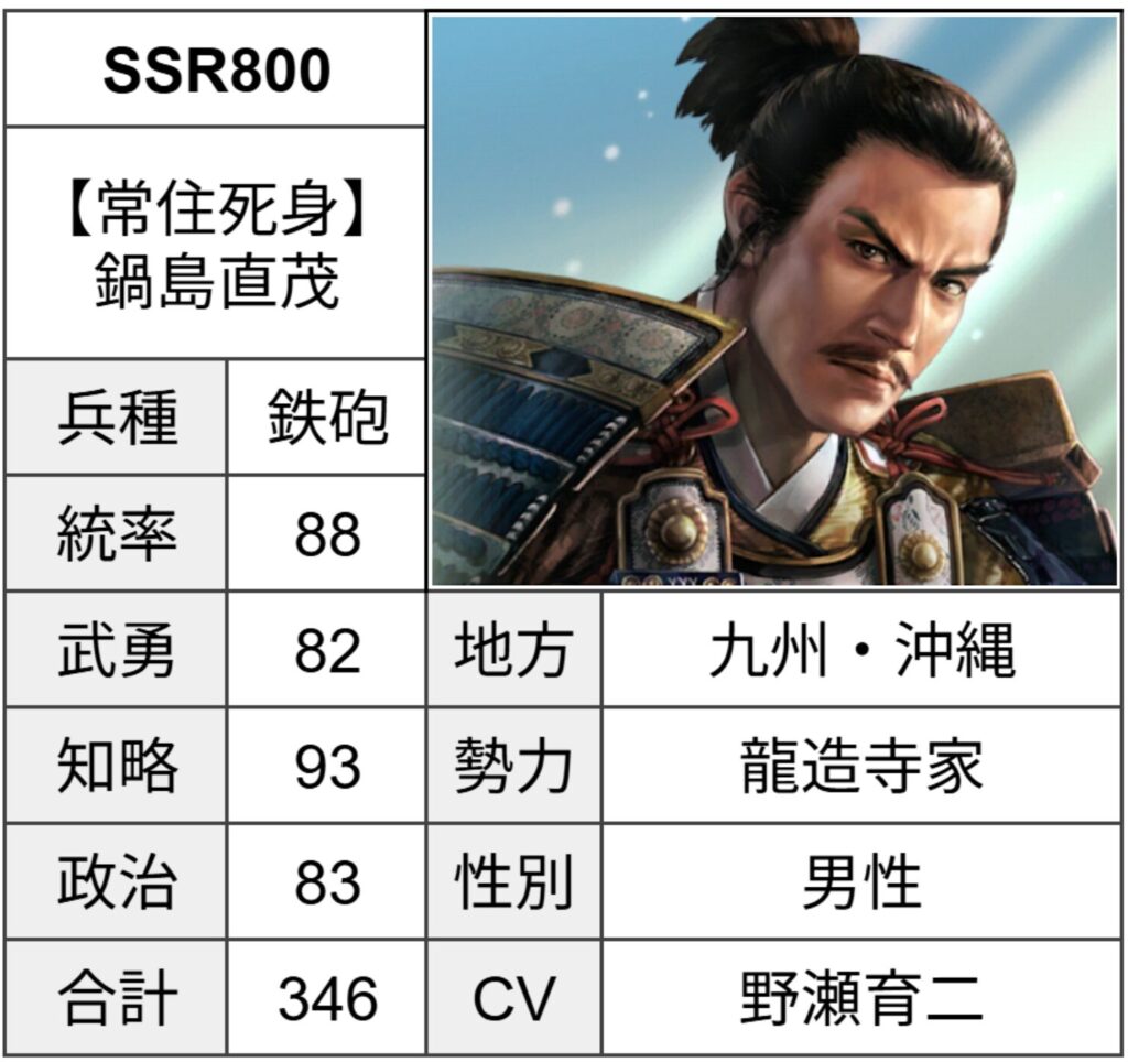 龍造寺家はSSR武将が多くないですが、九州・沖縄地方には鉄砲SSR武将が多数います。