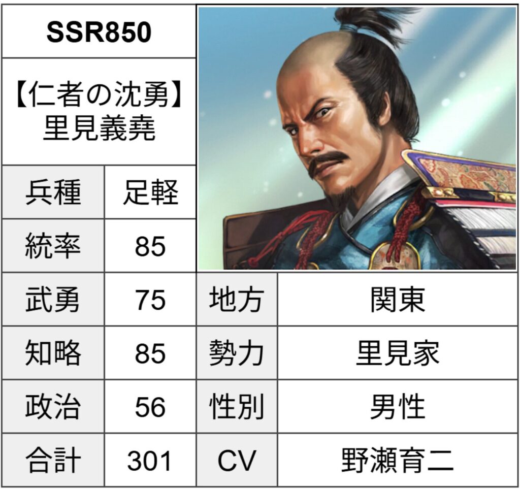 6 | 【仁者の沈勇】 里見義堯 | 301 | 85 | 75 | 85 | 56 | 関東 |