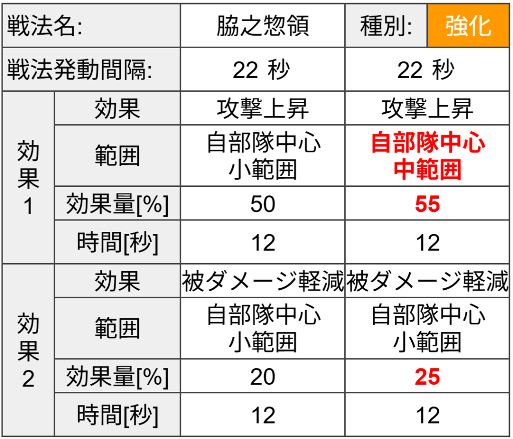 通常攻撃で与える事が出来るダメージが増えるということは、戦法を撃ちあう時間帯まで部隊が生き残れない場合が増えるという事です。