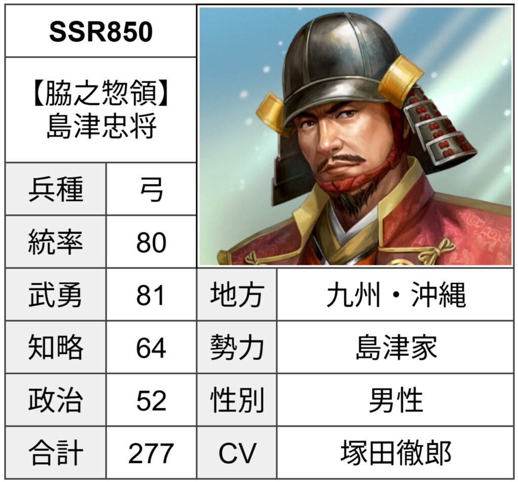 【薩州の英君】および【名湯武将】の島津義久以来の弓兵種のSSR武将となります。