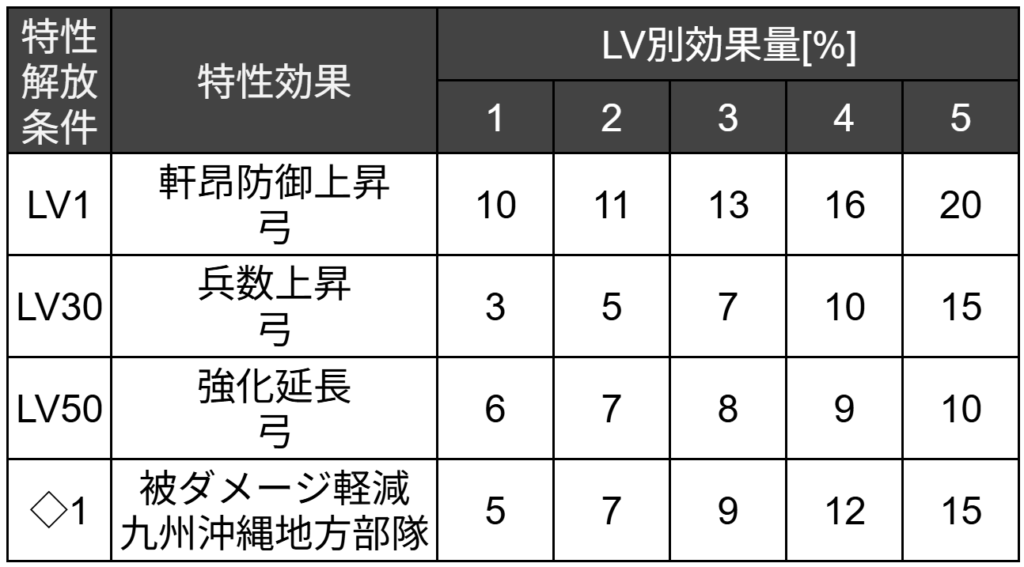 【被ダメージ軽減・九州沖縄地方部隊】を持ちます。