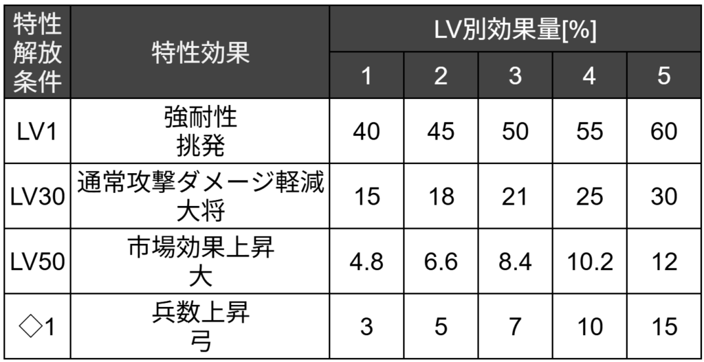 【兵数上昇・弓】を持ちます。