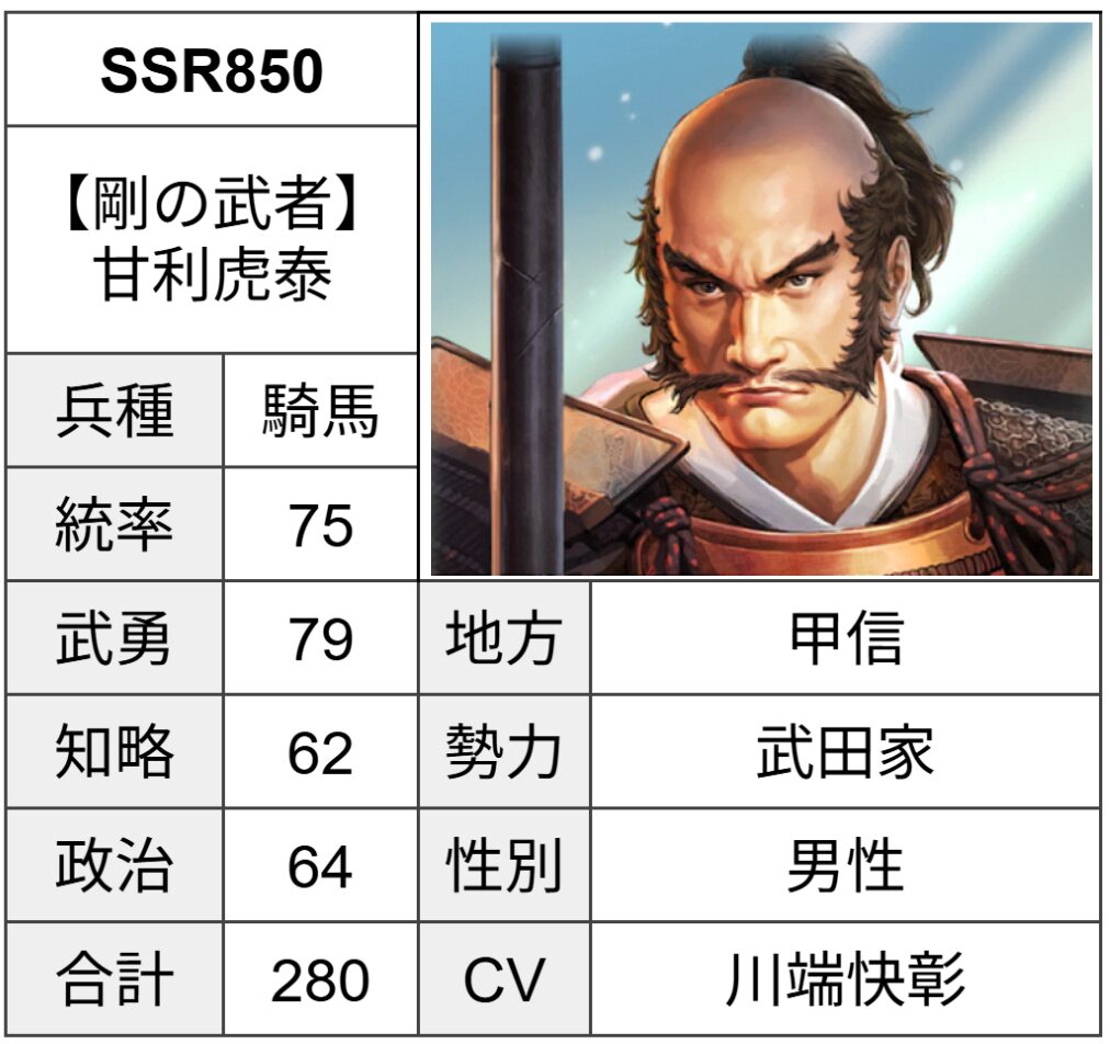 | 【剛の武者】 甘利虎奉 | 280 | 75 | 79 | 62 | 64 |