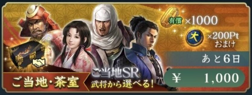 初期の頃は地方限定武将や茶室限定武将の友好度が期間限定で販売されたこともありました。