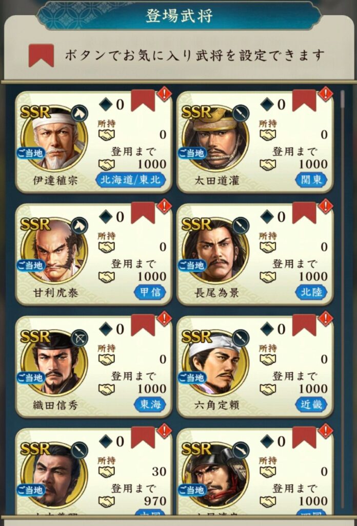 ただし、全ての地方限定武将がポップするという事は本来その地方でポップするはずの地方限定武将の友好度が獲得しづらくなることを意味します。