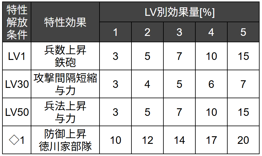 【防御上昇・徳川家部隊】 を持ちます。