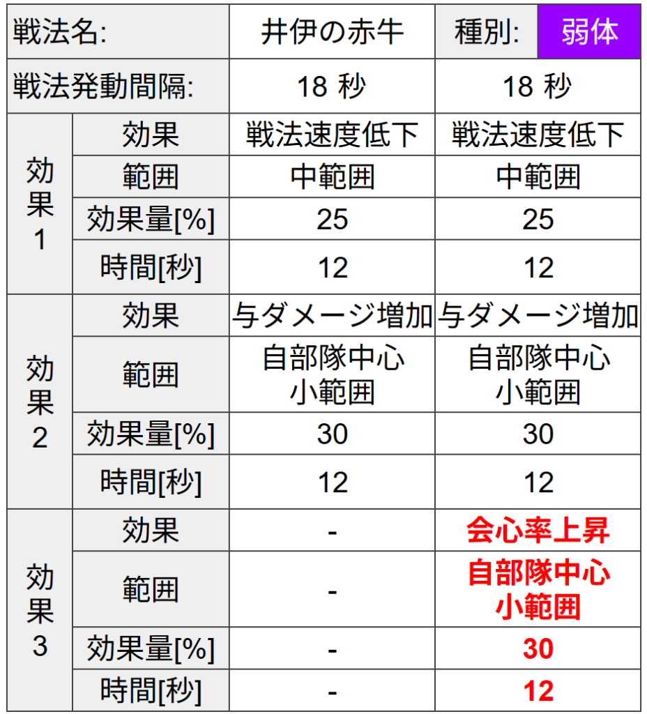 【与ダメージ増加】と【会心率上昇】の範囲は自部隊中心小範囲となります。