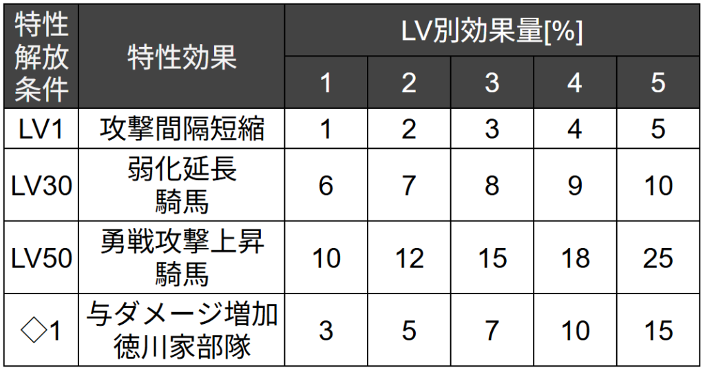 【与ダメージ増加・徳川家部隊】 を持ちます。