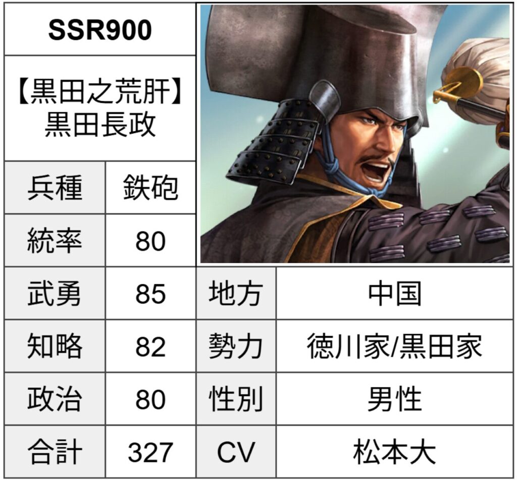 『勢力戦 第10期』にて黒田家筆頭家老と共に登場。
