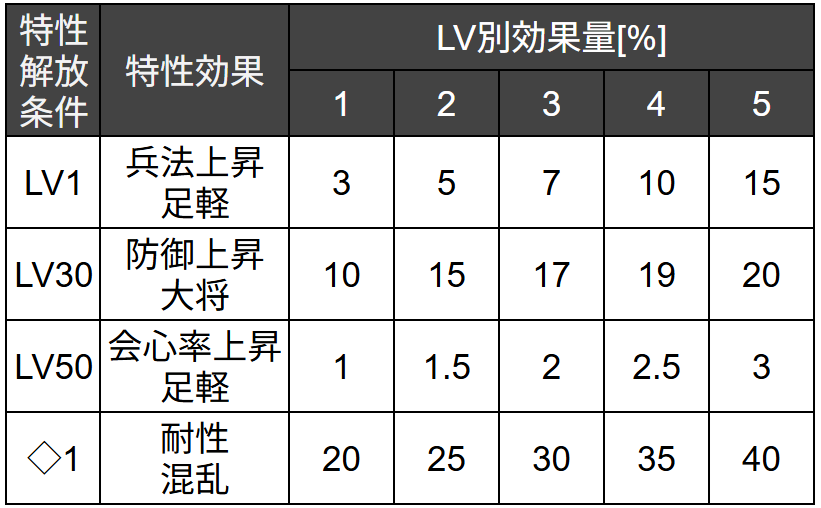 戦法発動まで部隊が耐えられるように防御を高めておきましょう。