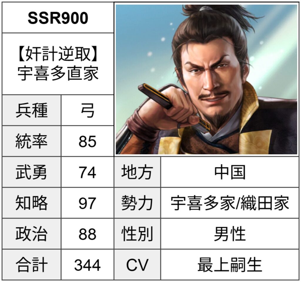 宇喜多直家は強化複製という希少な戦法効果を持っています。
