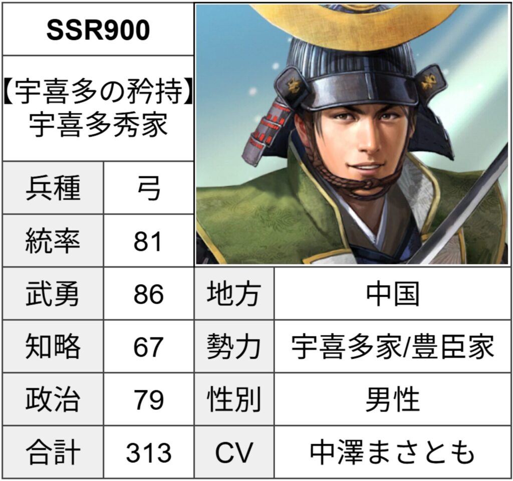 宇喜多家の武将は数が多くないため勢力一致を狙うなら豊臣家部隊の方が編成を組みやすいです。