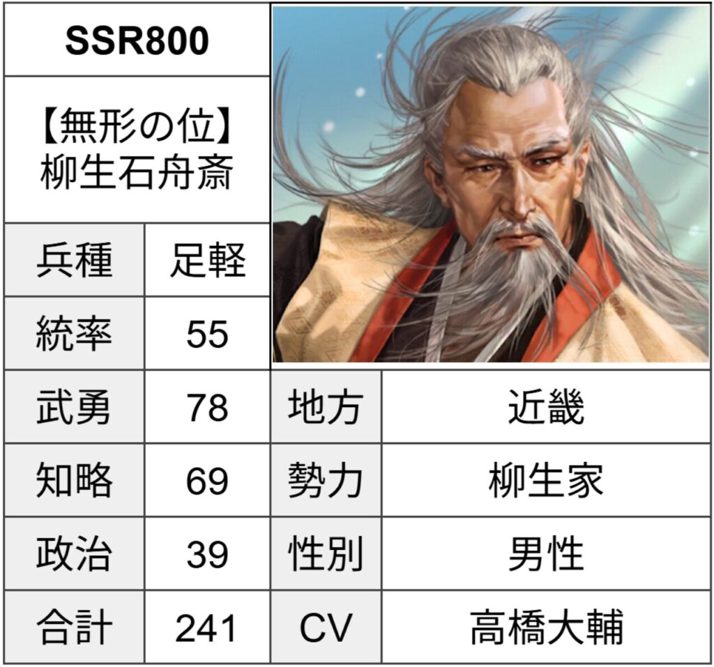 柳生家としては武将の数が少ないですが、近畿地方には豊臣家や足利家にSSR足軽武将が複数いるため兵種一致と地方一致の編成ボーナスは狙いやすいです。