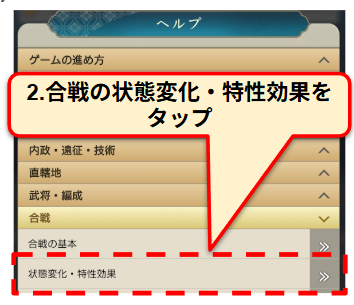 このヘルプで状態変化(強化状態、弱化状態)と特性効果を確認することが出来ます。